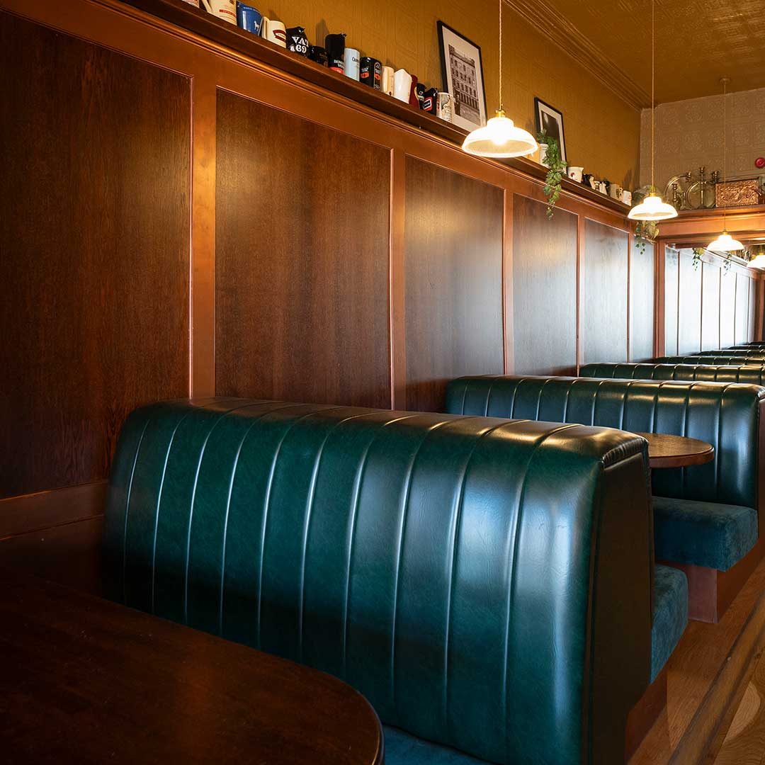 Our team carried out an extensive refit of the space, including the manufacture of a bespoke solid timber and wood veneer bar, finished with a rich French polish. Custom seating was created in a classic pub style, reimagined with a contemporary twist to balance heritage and modern character.